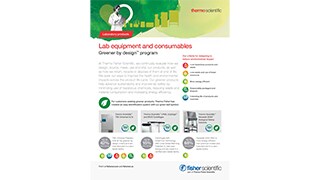 La marque Thermo ScientificMC évalue constamment la fabrication et la distribution de ses produits de laboratoire, ainsi que leur utilisation par ses clients. En intégrant des principes de chimie et d’ingénierie durables dans la conception de leurs produits, ils favorisent la durabilité et améliorent la sécurité en laboratoire. Les produits Thermo Scientific plus écologiques limitent l’utilisation de substances dangereuses, réduisent les déchets et la consommation de matériaux, et améliorent l’efficacité énergétique.