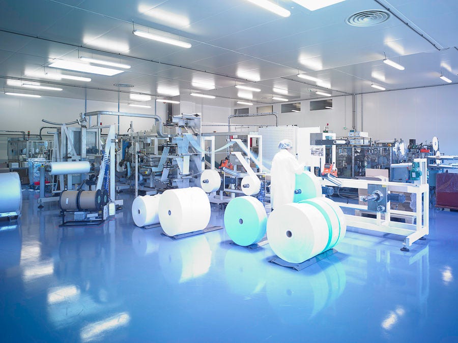 Coverall sterilized by gamma irradiation and cleanroom apparel compatible from ISO class 4.