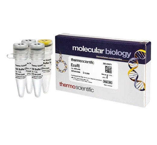 The FastDigest EcoRI restriction enzyme recognizes G^AATTC sites and cuts best at 37°C in 5-15 minutes using universal FastDigest Buffer.