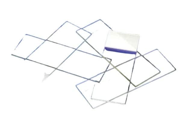 These glass microscope slides are prewashed and polished with a 90° ground edge on all four sides. Available in clear glass or frosted at one end and supplied wrapped in cellophane for improved cleanliness. Dimensions (L x W x D): 76mm x 26mm x 0.8–1.5mm.